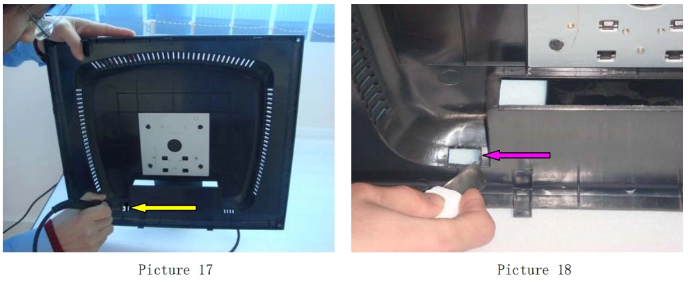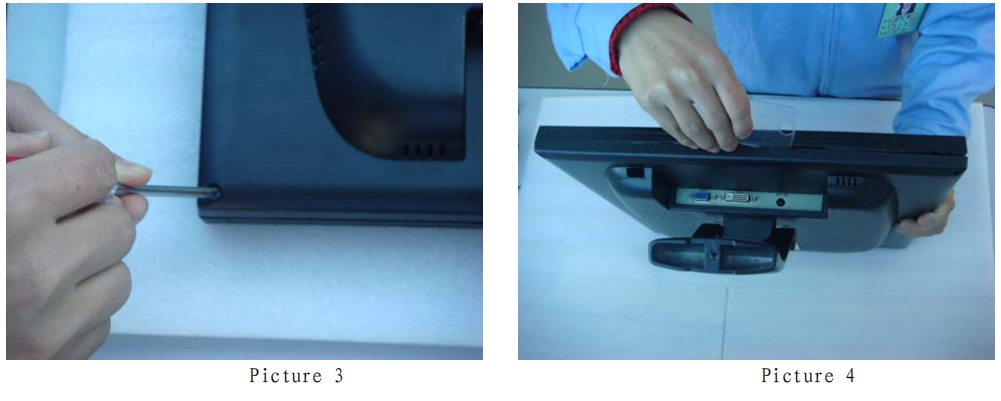 Примечание: Чтобы открыть заднюю крышку монитора, пожалуйста, делайте это следующим образом: снизу вверх , сбоку и сверху вниз.