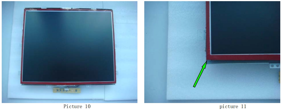 4. Снимите ЖК-модуль (как показано на рисунке 8) и уберите его в безопасное место, как показано на рисунке 9. Затем аккуратно приклейте двусторонний скотч к четырем сторонам монитора (как показано на рисунке 10). И помните, что не следует приклеивать двусторонний скотч к сенсорной области (как показано на рисунке 11).