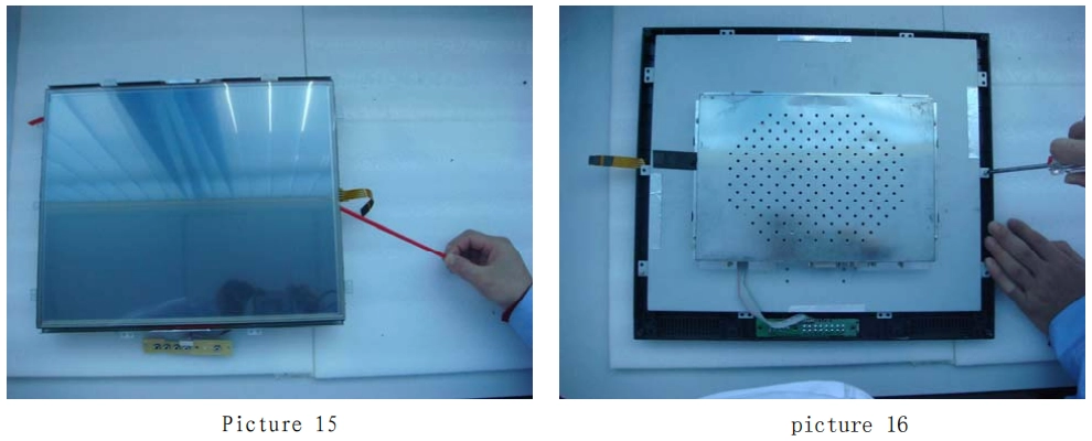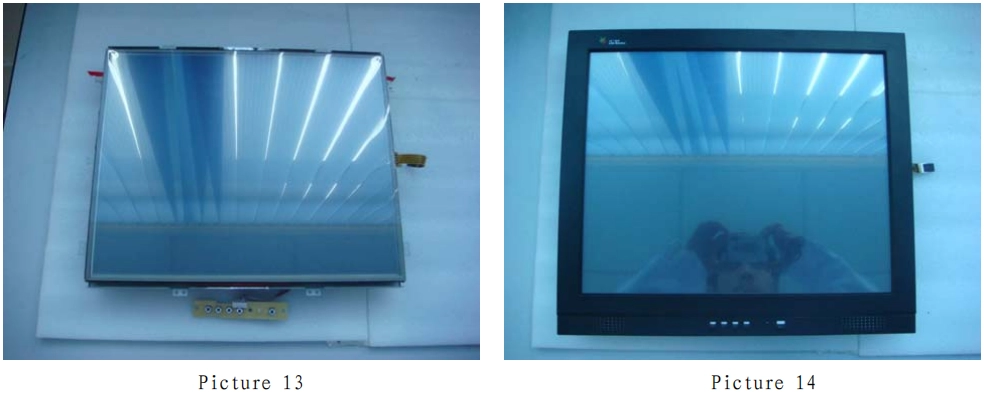 6. Пожалуйста, проложите соединительный кабель сенсорного экрана на обратной стороне ЖК-модуля и прикрепите контроллер с помощью двустороннего клеевого скотча к свободному месту на задней стороне ЖК-модуля (как показано на рисунках 20 и 21).